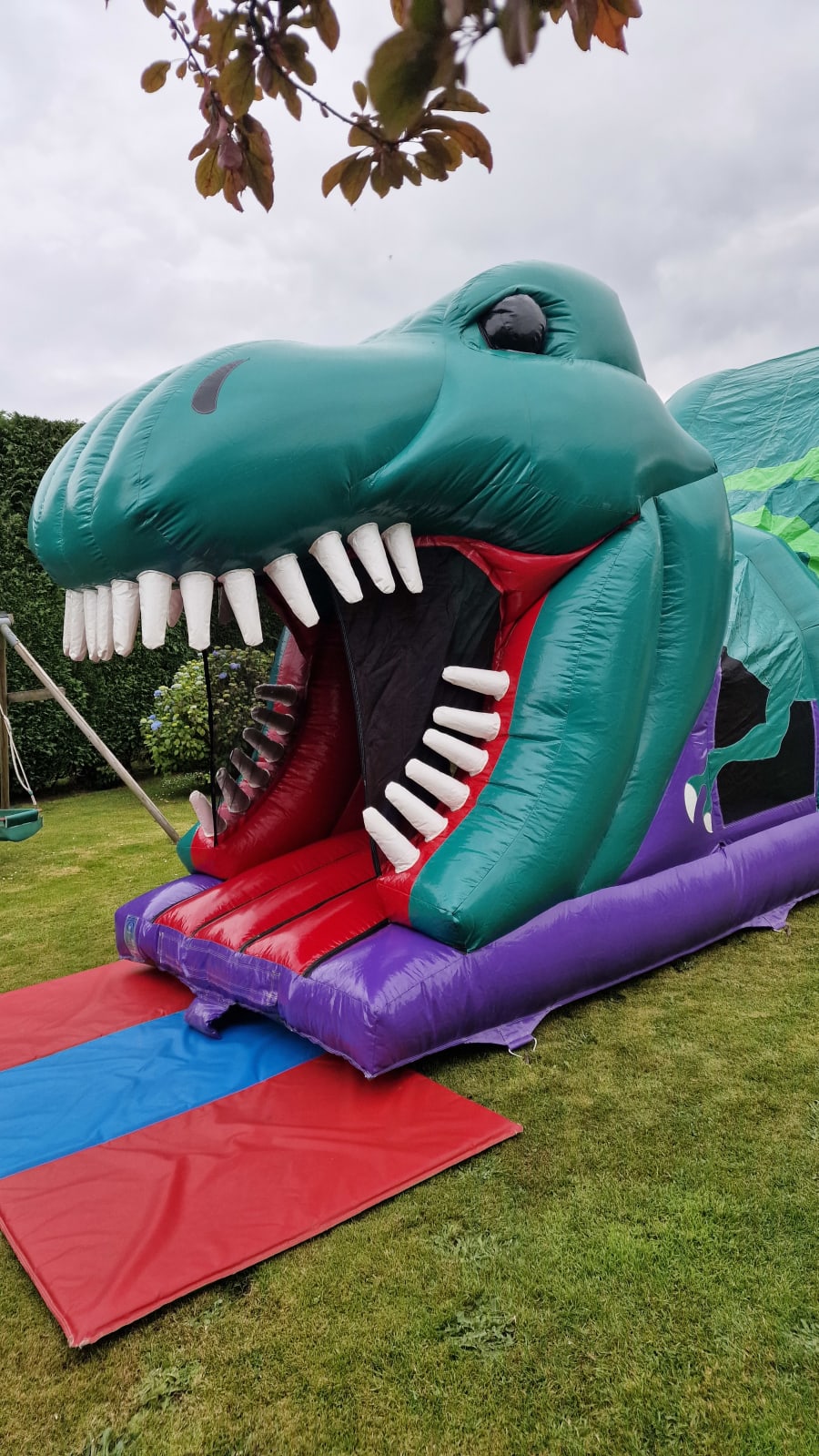 Prepare for an adventure like no other with our jaw-dropping 33ft 3D Dino Assault Course Hire! Perfect for parties, events, and fun-filled days, this assault course will transport your little ones into a world of prehistoric excitement and adventure. With its wide-open mouth, towering tail, and endless obstacles to conquer, this assault course promises non-stop thrills and laughter for kids of all ages.